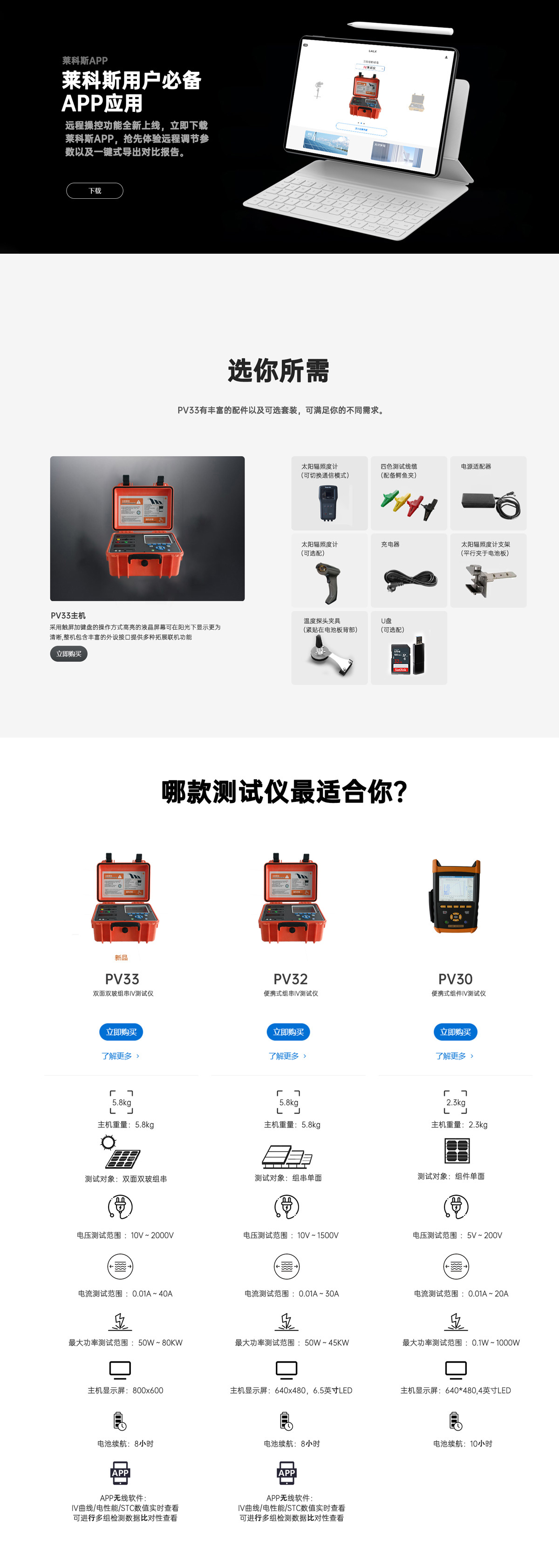 采?萊克斯最新的電阻式測(cè)試模塊,單組件檢測(cè)更為精準(zhǔn),可最?測(cè)試2000V組串的IV曲線測(cè)試,以及40A